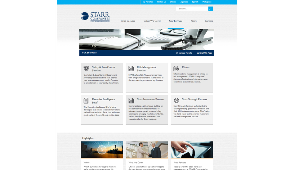Starr Companies needed a site that reflected their unique set of offerings. Research included user interviews and employee surveys to create personas.